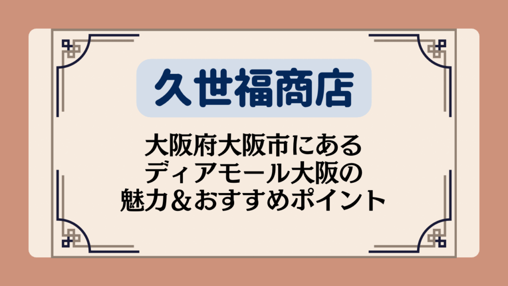 【久世福商店の店舗】大阪府大阪市にあるディアモール大阪の魅力&おすすめポイント