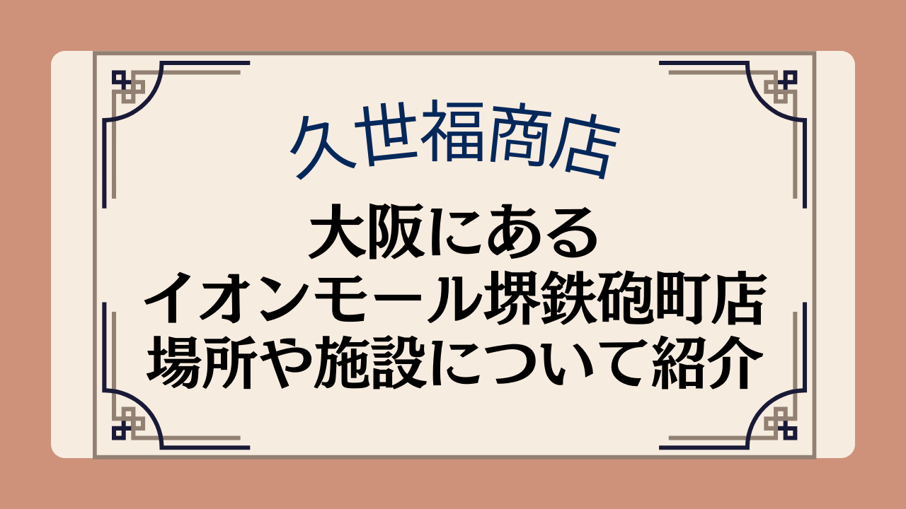 【久世福商店の店舗】大阪にあるイオンモール堺鉄砲町の場所や施設について紹介/まとめ