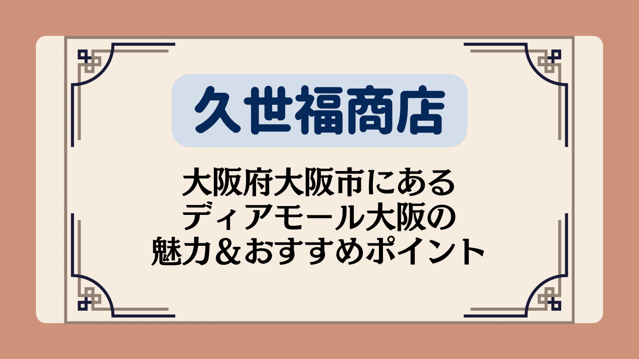 といった方に向けて、今回は大阪府大阪市のディアモール大阪にある久世福商店の店舗を紹介します。