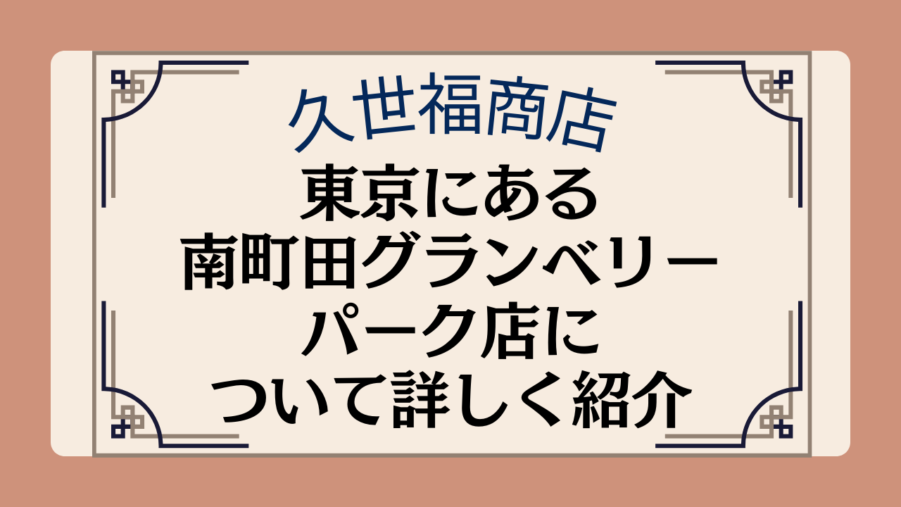 【久世福商店の店舗】東京都内にある南町田グランベリーパーク店の場所や施設について紹介