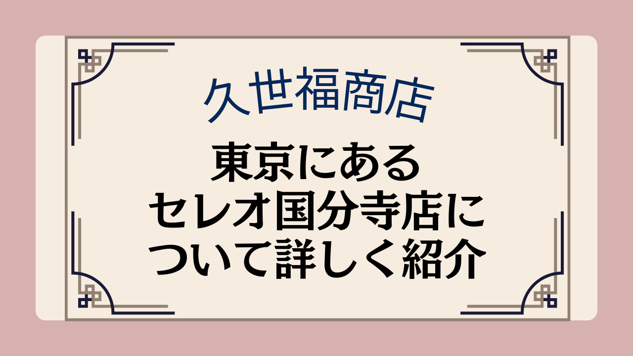 久世福商店の店舗がある東京都内・セレオ国分寺のおすすめポイント5つ紹介します。