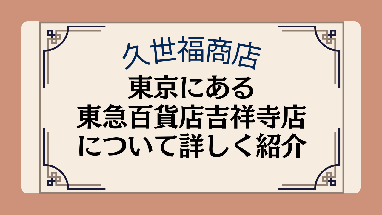 久世福商店の店舗がある東京の東急百貨店吉祥寺店のおすすめポイント5つについて紹介します。