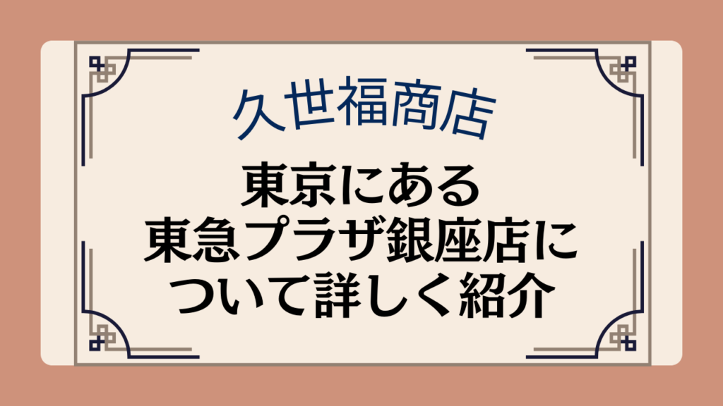 【久世福商店の店舗】東京都内にある東急プラザ銀座店の場所や施設について紹介