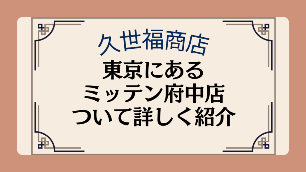 【久世福商店の店舗】東京都内にあるミッテン府中店の場所や施設について紹介