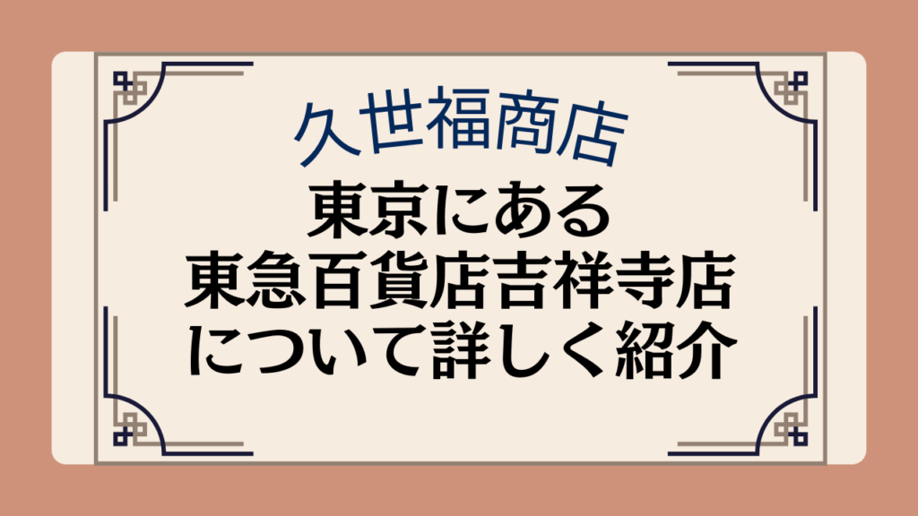 今回は東京都内にある東急百貨店吉祥寺店の久世福商店について紹介します。 「久世福商店の商品を買いたいのに遠くていけない…」 「久世福商店の店舗が近くにない」 という方も安心してください。 久世福商店はオンラインショップの久世福商店公式サイトが... -